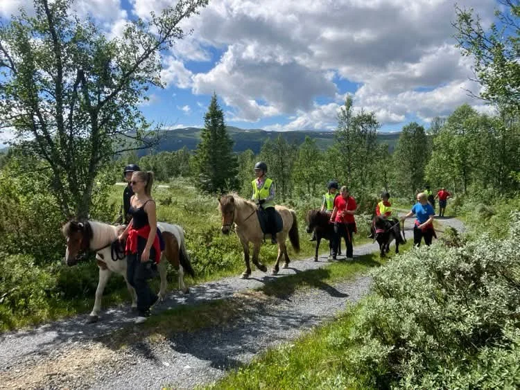 Foresatte leier hesten. Personell fra Spåtind Fjellridning går sammen med dere på turen.